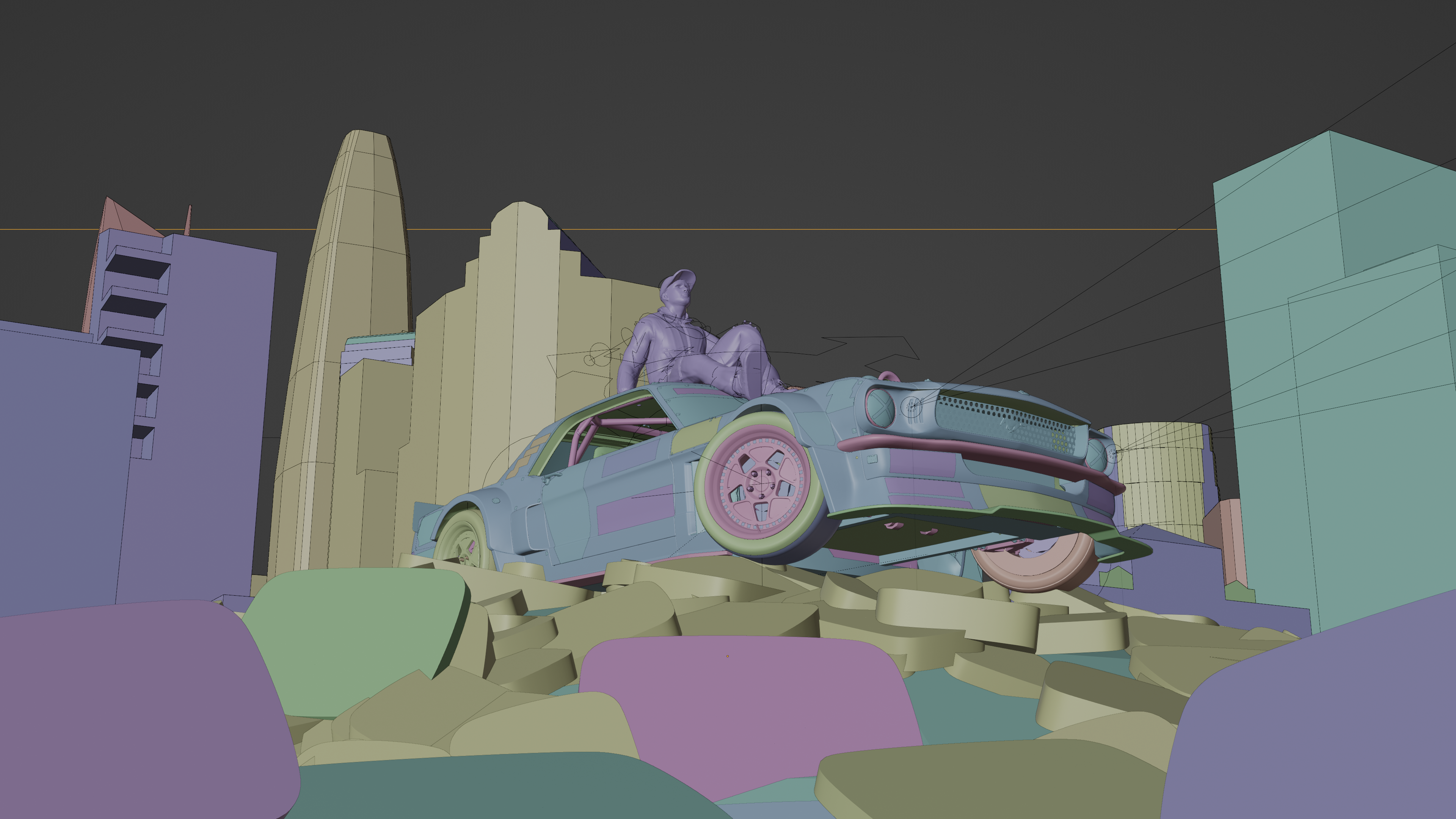 J'ai alors carte blanche pour la création de ces visuels. Je décide alors d'utiliser la 3D afin d'avoir une grande liberté de conception tant sur la mise en scène que sur l'éclairage appuyant l'identité visuelle très "rouge" de la chaîne.